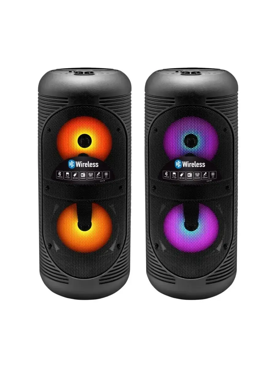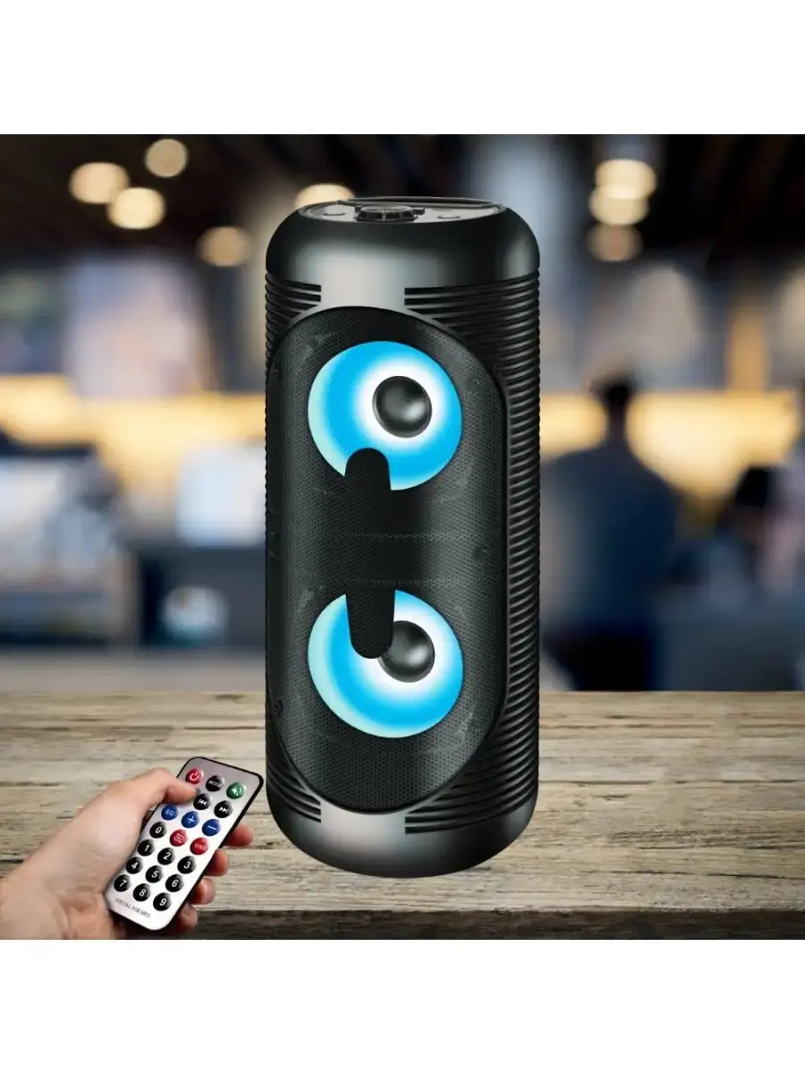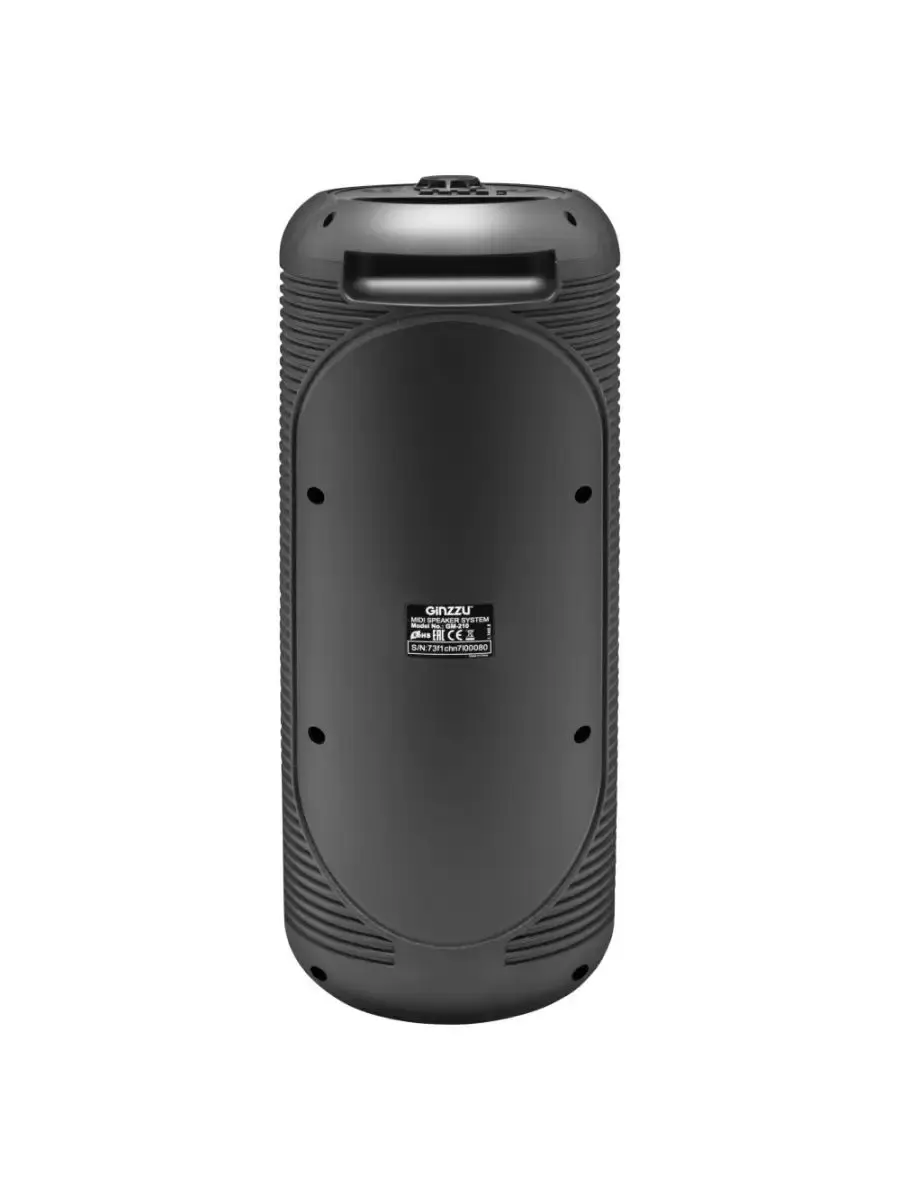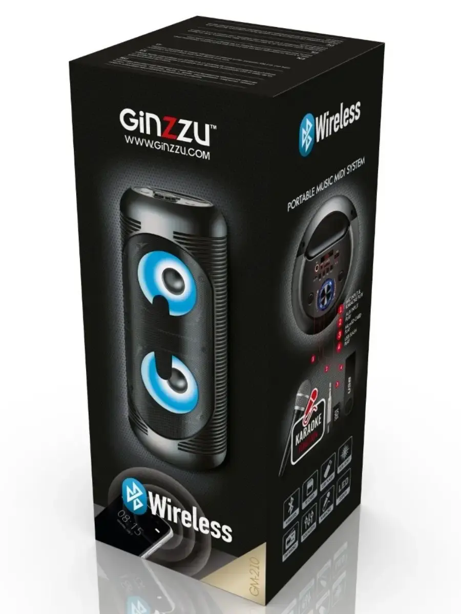 Переносная акустическая система Midi GiNZZU GM-210, с функцией BLUETOOTH (V5.0), 150Гц- 18кГц, выходная мощность RMS 28Вт, аудиоплеер USB-flash, microSD-card, FM-радио, пульт ДУ, эквалайзер (поп, рок, джаз, классика), режимы MUTE, STANDBY, микрофонный вход, функция КАРАОКЕ, динамическая LED подсветка динамиков.