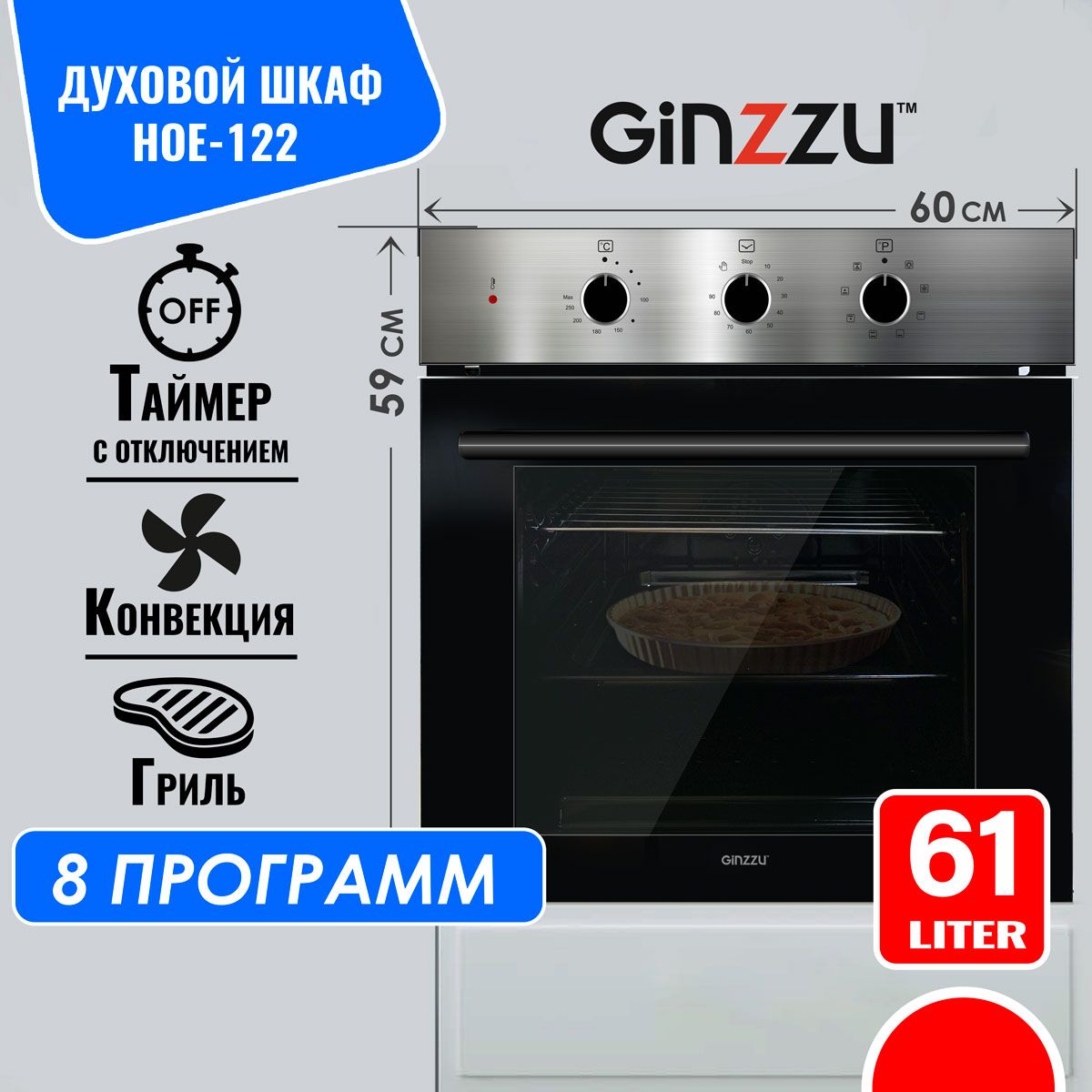Встраиваемый электрический духовой шкаф HOE-122 имеет объем 61л, 8 программ, таймер с отключением, в комплекте глубокий противень и решетка. Энергоэффективность A+ позволяет духовке быстрее выходить на режим и экономить электроэнергию. Нижний ТЭН закрытый.