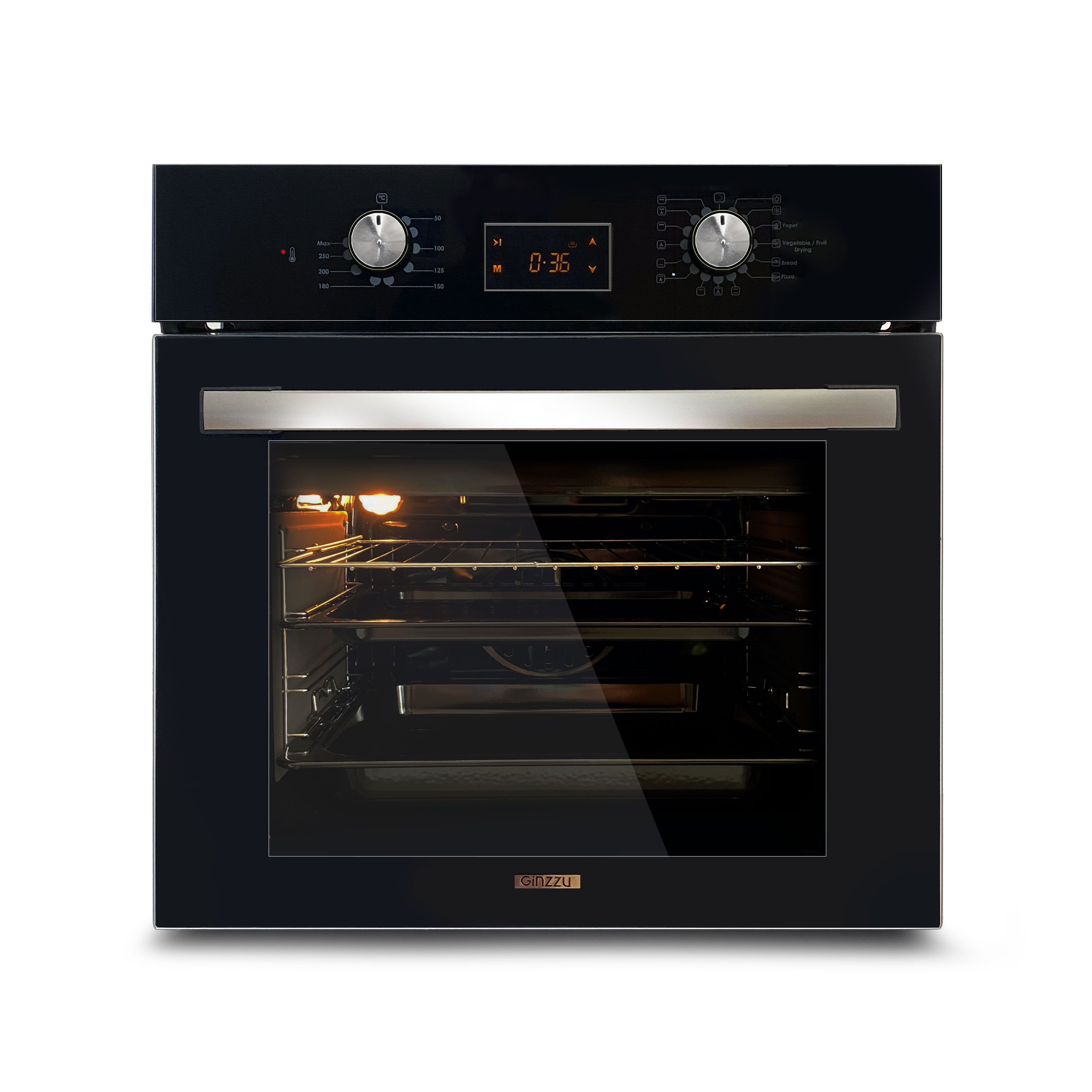 Духовой шкаф GINZZU HOE-215 объем 61л, каталитическая очистка позволит всегда оставаться стенкам чистыми,