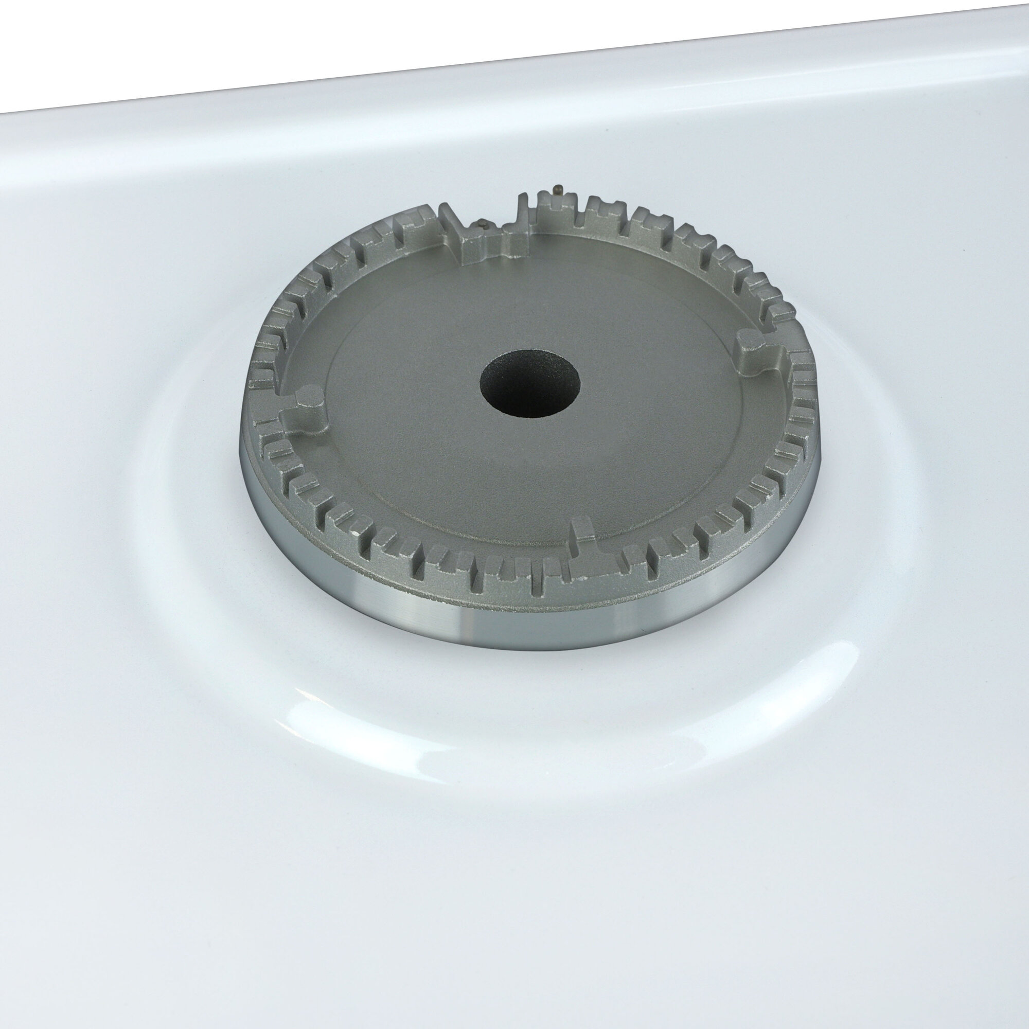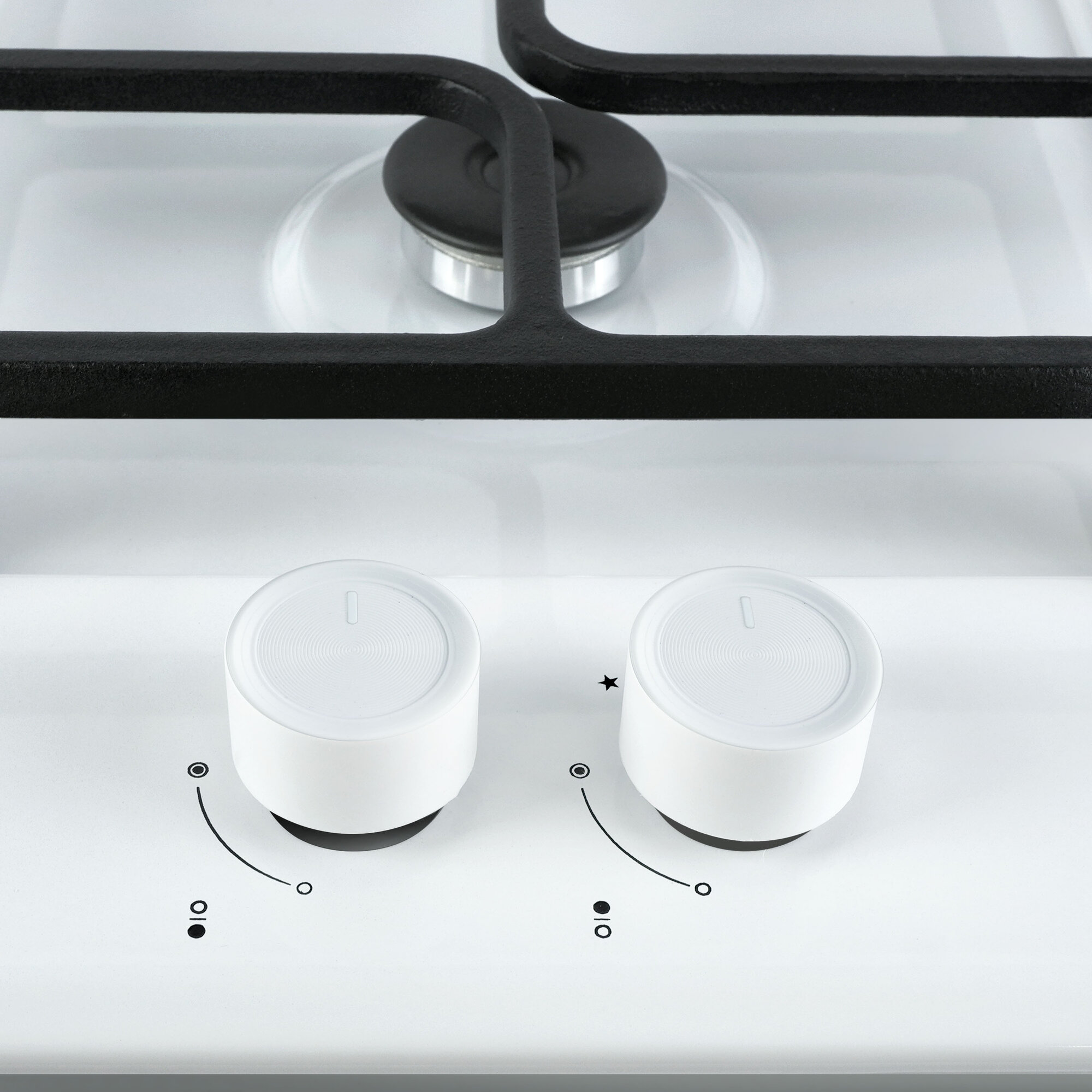 Газовый контроль и встроенный электроподжиг обеспечивают безопасность использования и удобство в эксплуатации. Управление осуществляется с помощью поворотных металлических ручек, что делает процесс приготовления пищи простым и интуитивно понятным.
