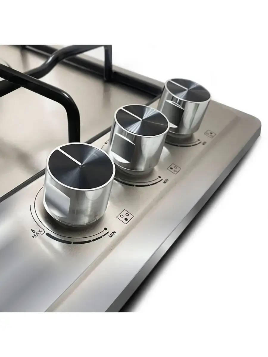Газовая варочная поверхность Ginzzu HCG-308 обладает высокой производительностью и надежностью. Имеет две массивных решетки из стали. Компактна. Одна из конфорок имеет горелку "тройная корона". Преимуществом данной модели является полезная функция газовый контроля и встроенный электроподжиг. Для управления используются удобные поворотные металлические ручки. Плита весит 6.885кг, габариты - 51x58.5x10 см. Данная модель компактна, но при этом обладает тремя конфорками.