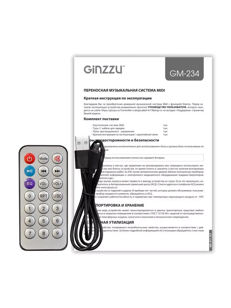 мидисистема, Type C кабель для зарядки, пульт ДУ, краткая инструкция / гарантийный талон