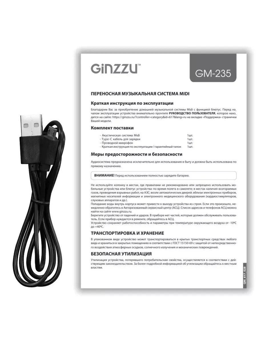 мидисистема, Type C кабель для зарядки, микрофон, краткая инструкция / гарантийный талон