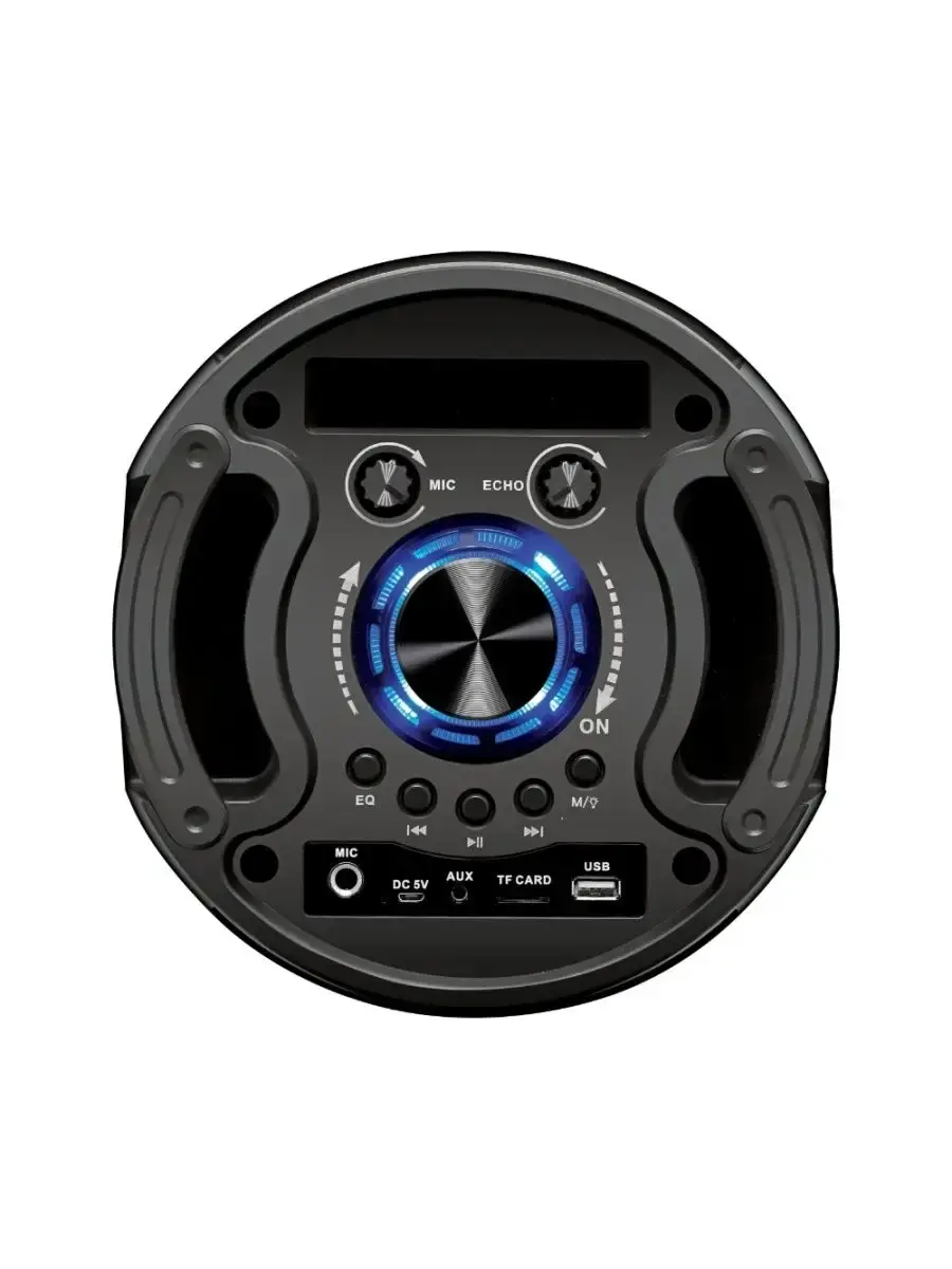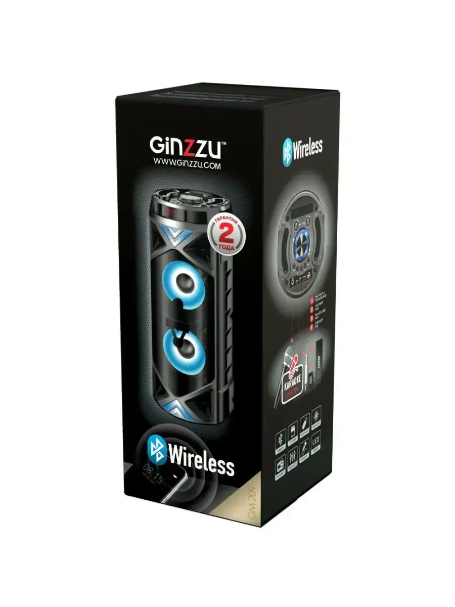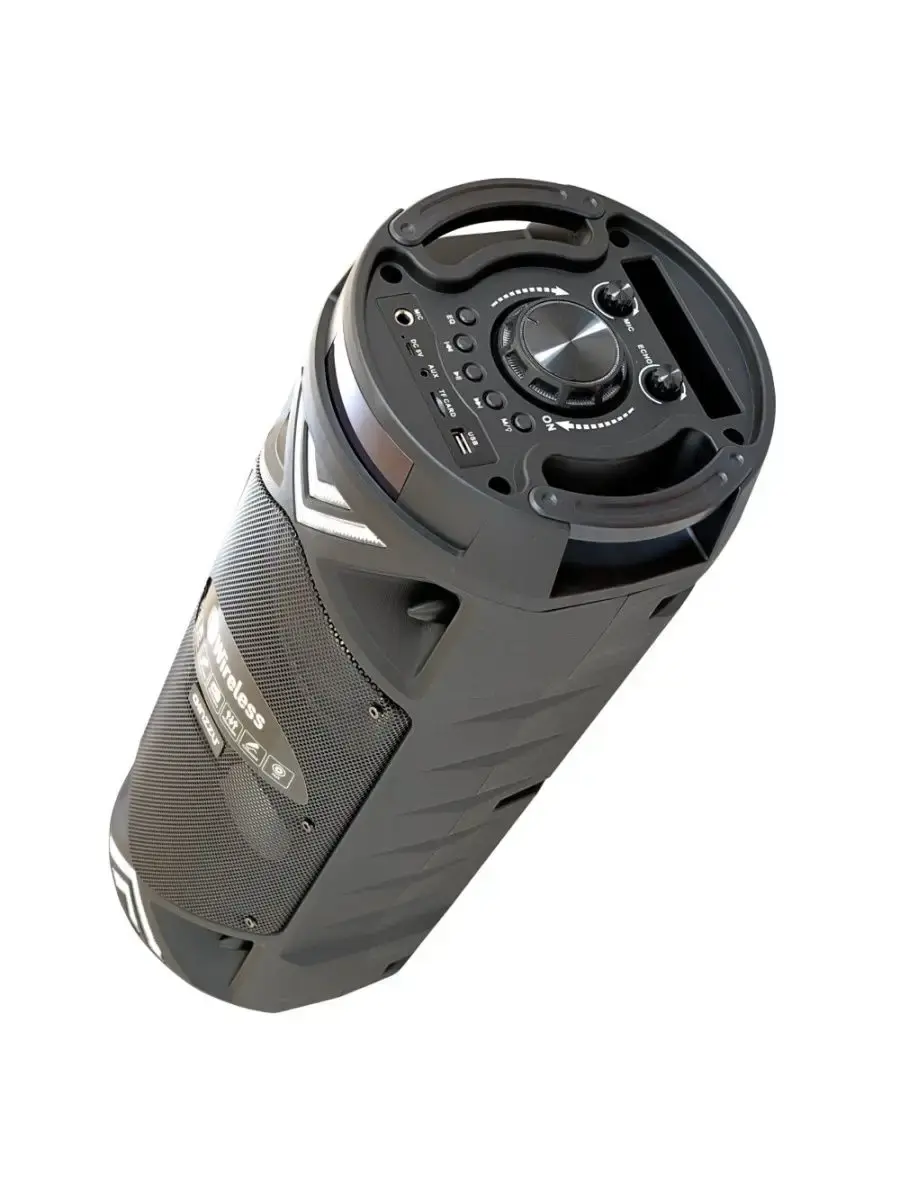 Переносная акустическая система Midi с функцией BLUETOOTH (V5.0), 150Гц- 18кГц, выходная мощность RMS 50Вт, аудиоплеер USB-flash, microSD-card, FM-радио, пульт ДУ, эквалайзер (поп, рок, джаз, классика), режимы MUTE, STANDBY, микрофонный вход, функция караоке, динамическая LED подсветка динамиков. Портативная беспроводная блютуз колонка.
