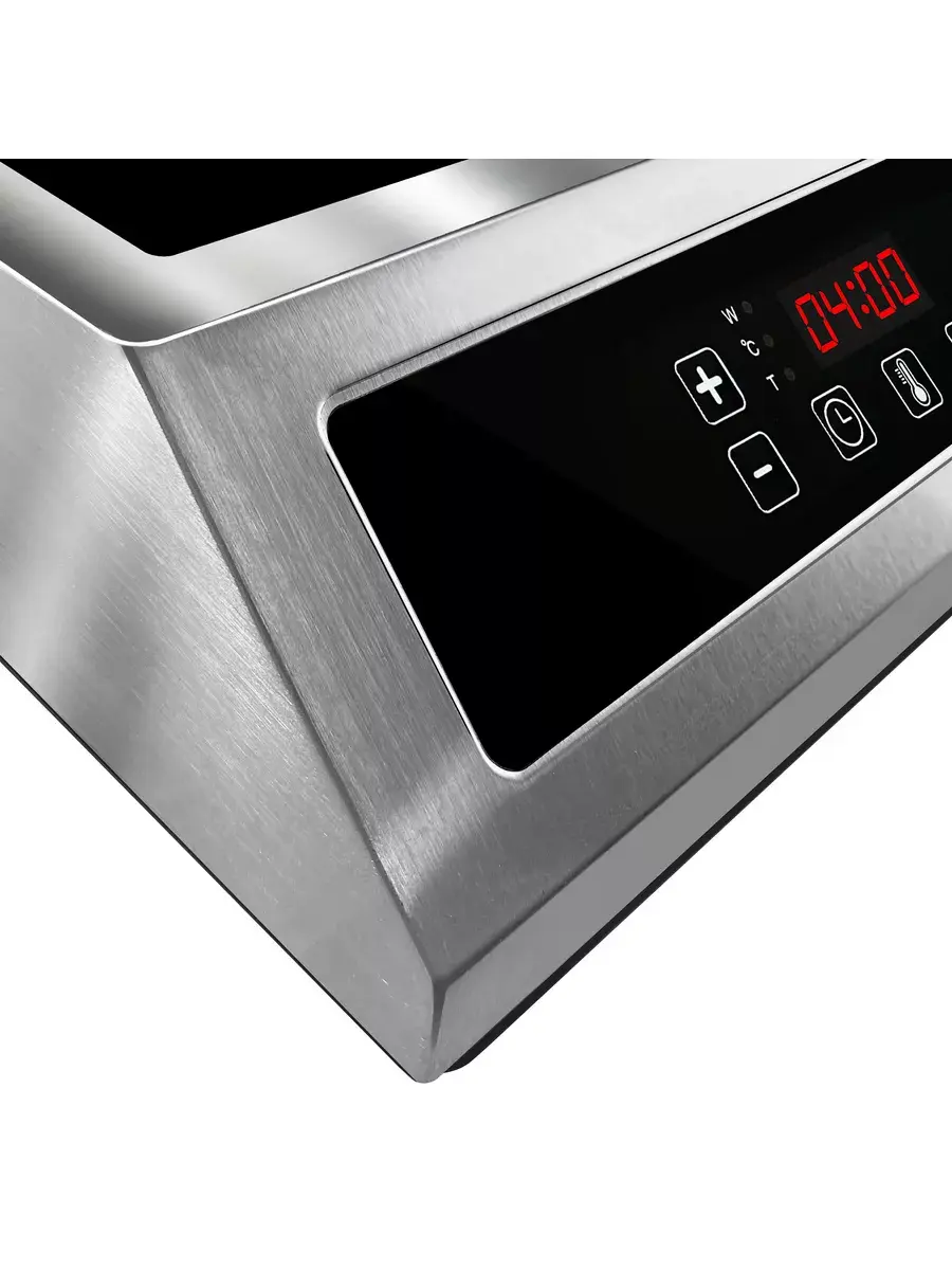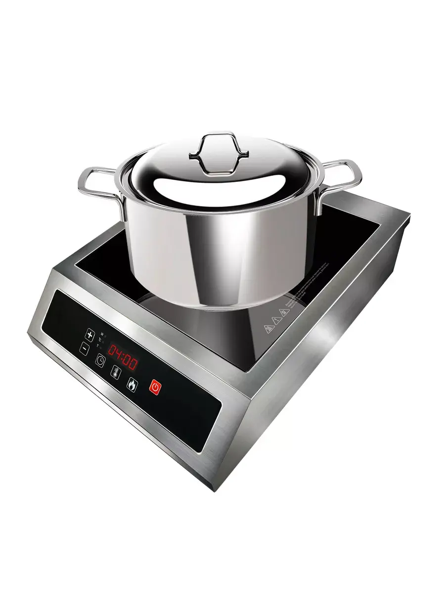 Индукционные плиты работают с посудой для индукционных плит (к дну прилипает магнит).