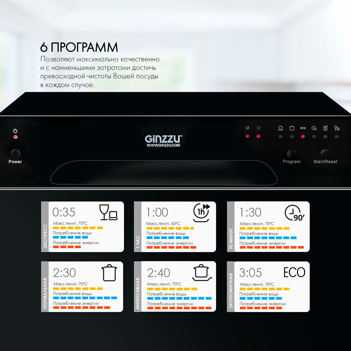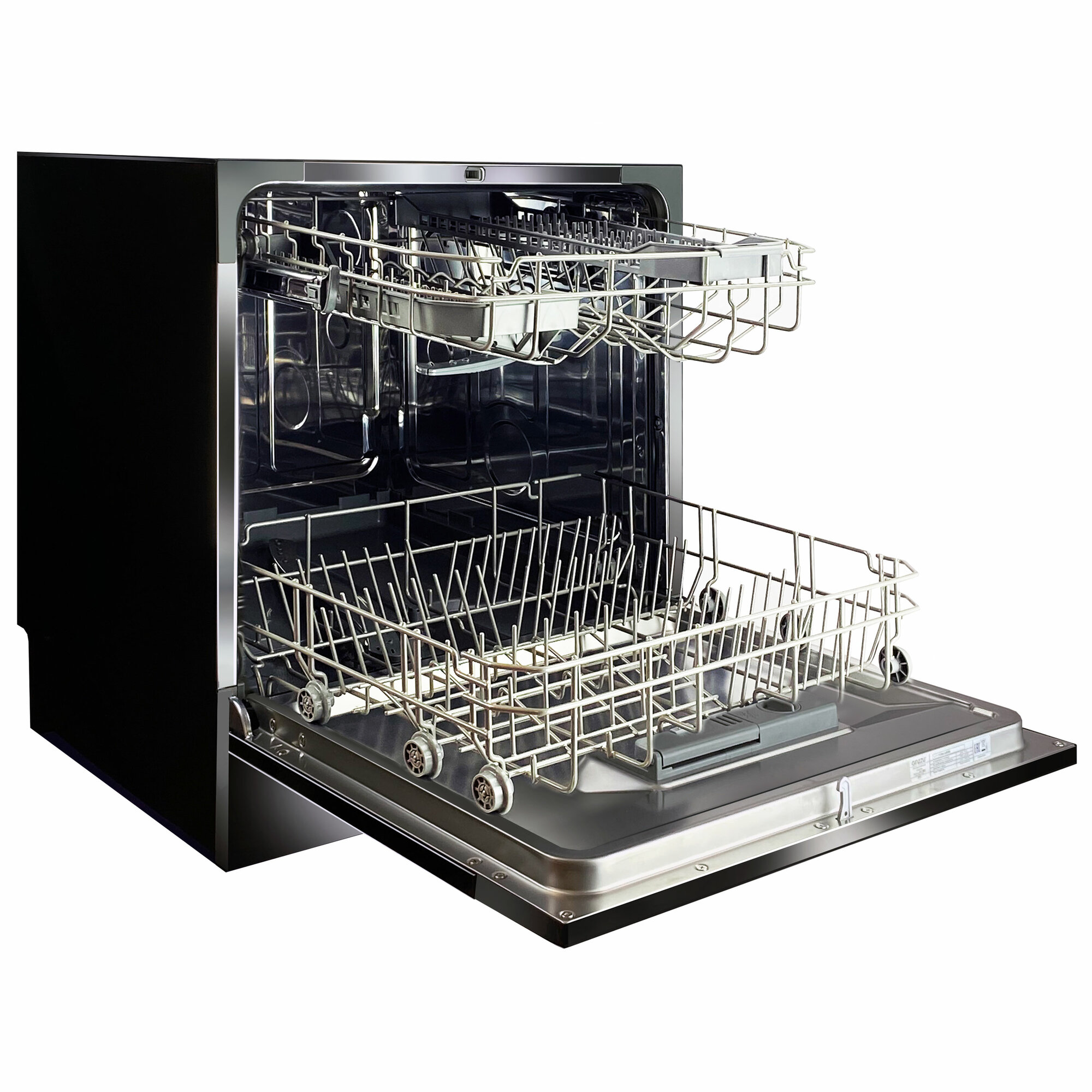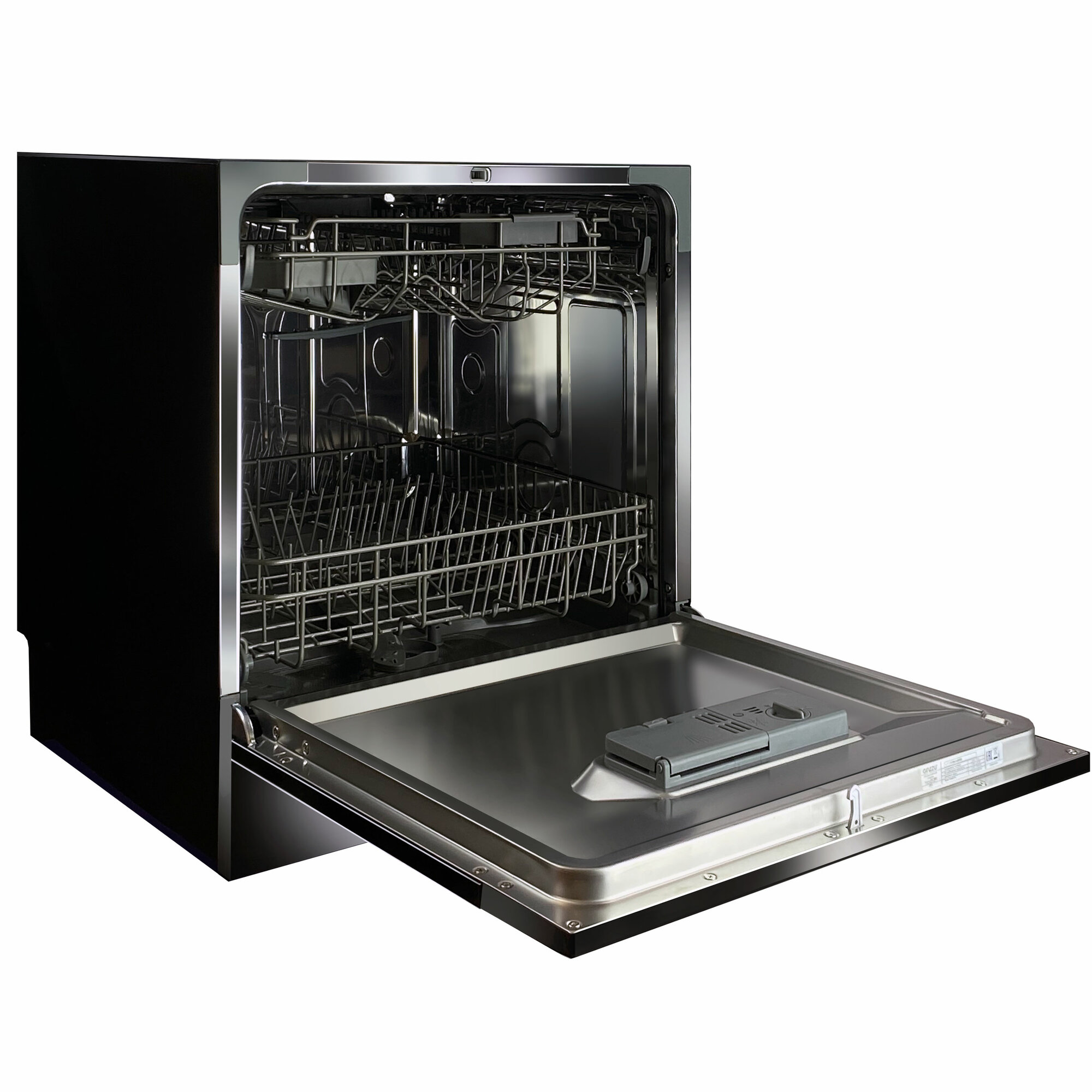 Впервые - 2 корзины и 2 разбрызгивателя в компактной посудомойке Вместимость - 8 комплектов посуды Высокий класс мойки A 6 программ мойки Функция 3 в 1 - свобода в выборе моющих средств Размер ГxШxВ 500x550x595