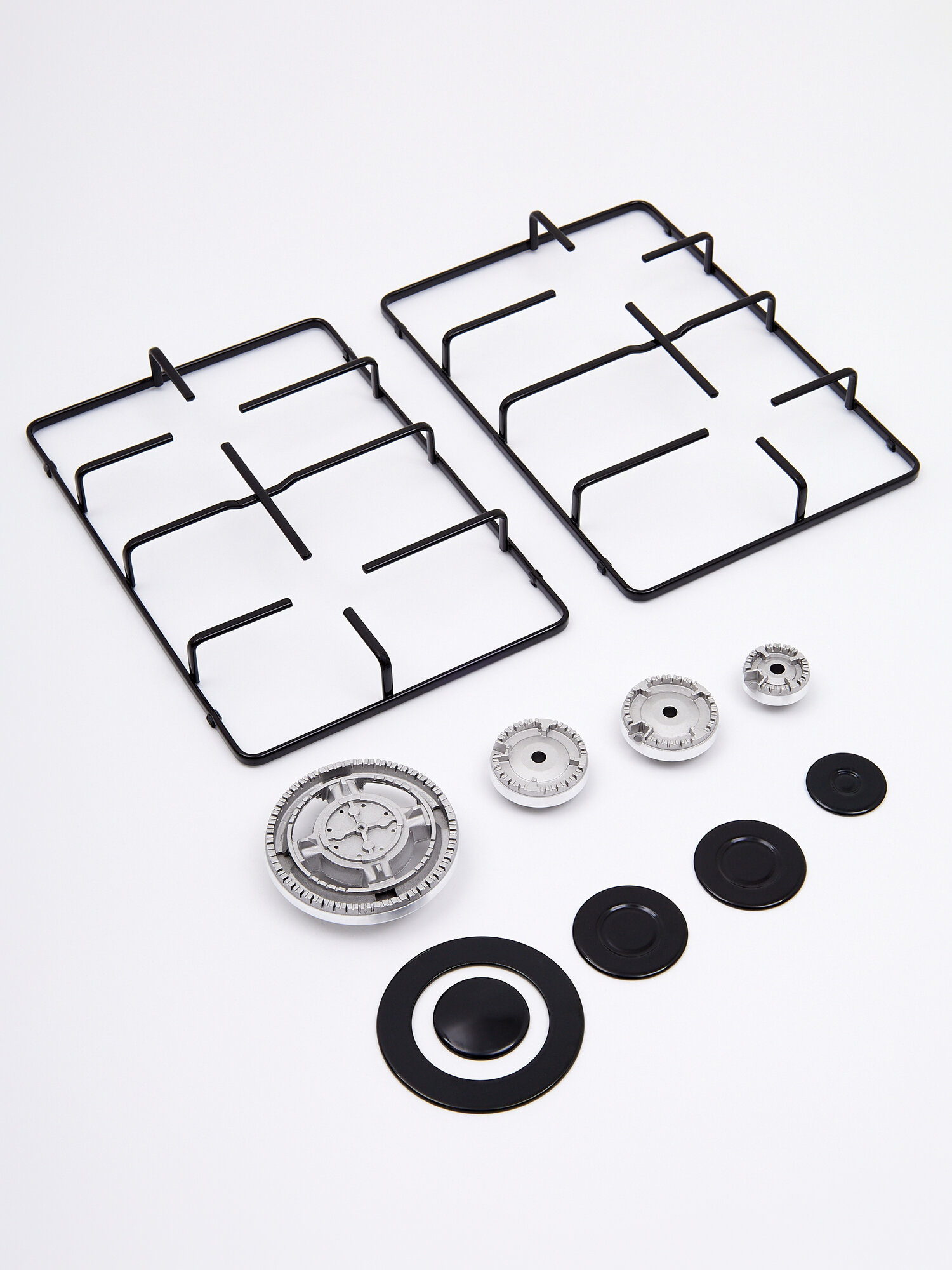 В комплект поставки входят варочная панель, уплотнитель, комплект инжекторов для сжиженного газа, гарантийный талон и руководство пользователя.
