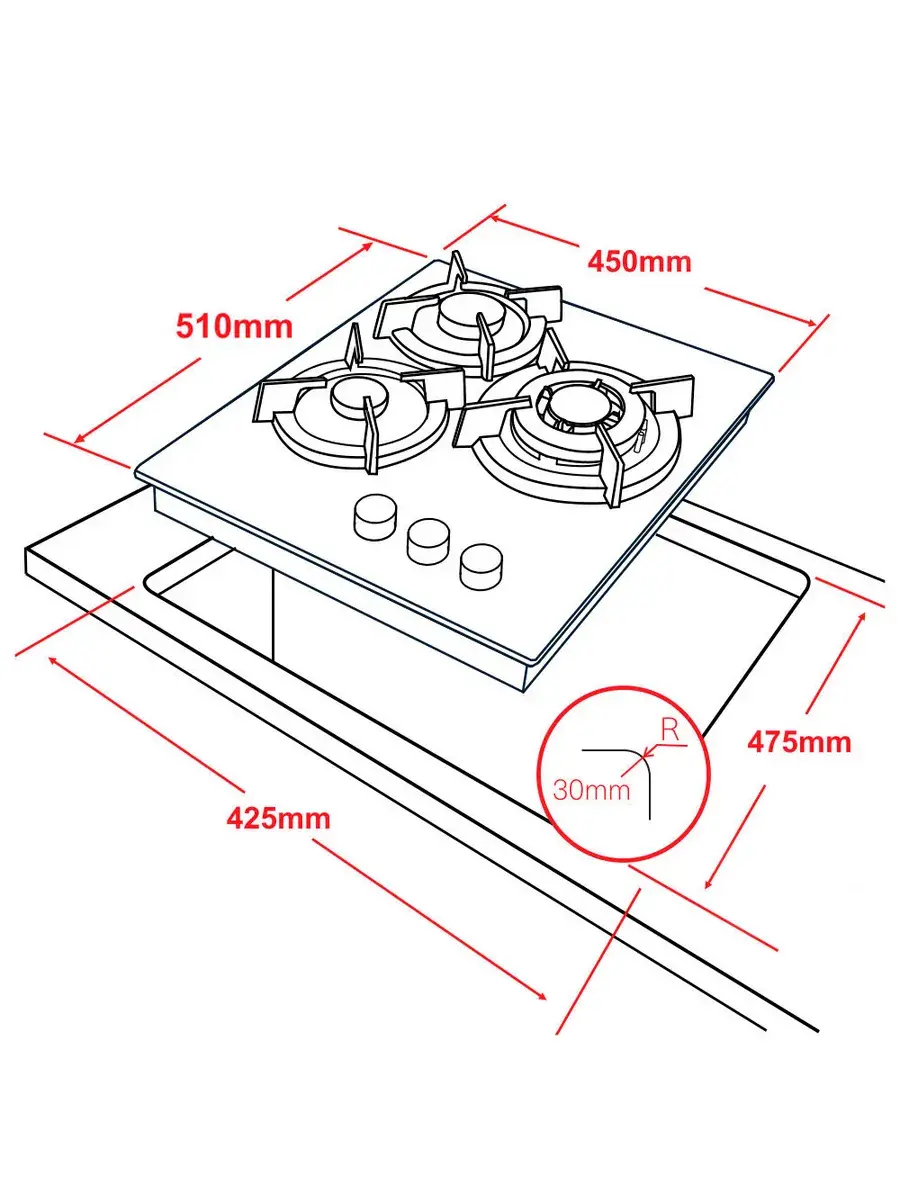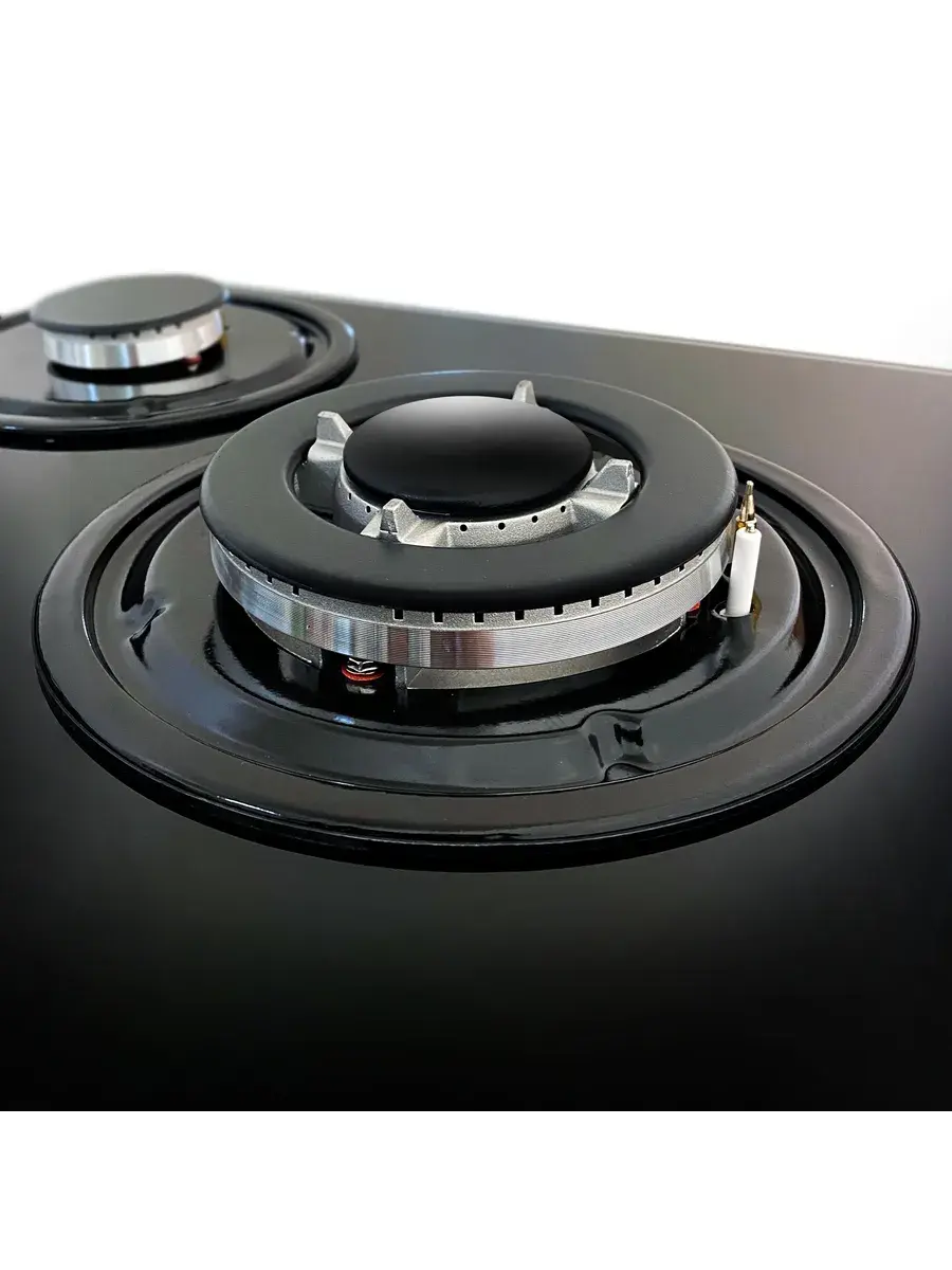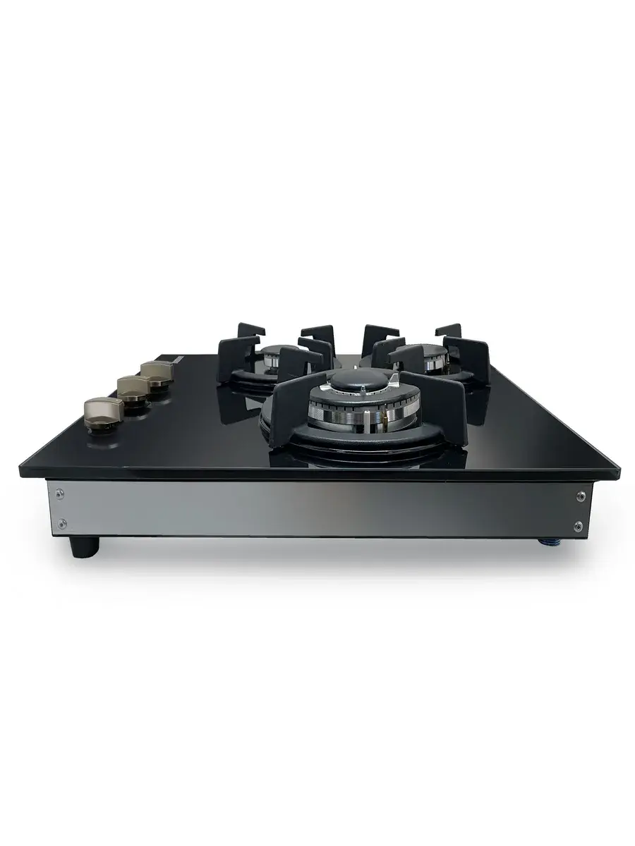 Газовая варочная поверхность HCG-203 Ginzzu bзготовлена из черного закаленного стекла: привлекательный вид, легкость очистки от загрязнений и стойкость к неблагоприятным воздействиям. Данная модель оснащена 3-мя конфорками. Имеет датчик газового контроля и электроподжиг. С помощью поворотных переключателей можно плавно регулировать интенсивность нагрева. Материал решеток (держателей) - чугун. Посадочное отверстие 425*475*R25мм