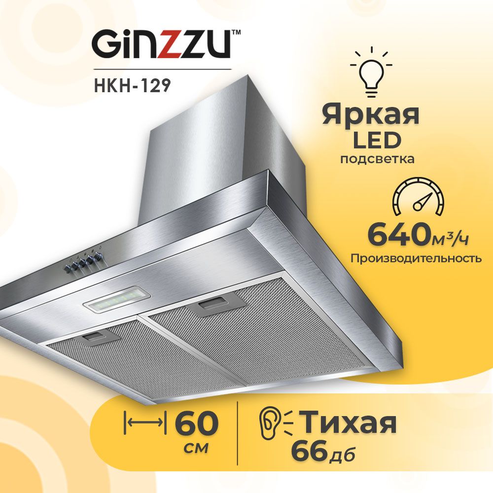 Удобная, стильная и мощная вытяжка HKH-129 шириной 60см. Выполнена из нержавеющей стали.